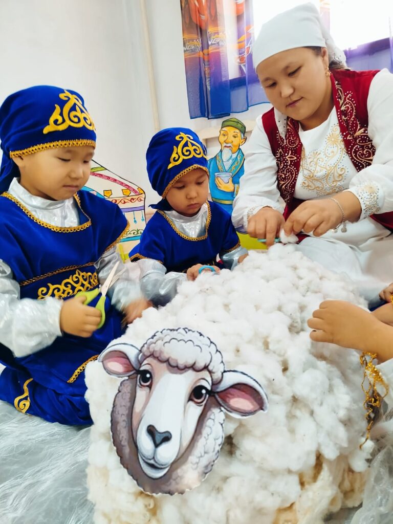 «Балдәурен» ортаңғы тобына тәрбиеші ретінде балалармен күнделікті жұмыс барысында ұлттық тәрбиенің әрбір элементін жүйелі түрде қолдануды басты назарда ұстаймын. Әрбір оқу қызметі, ойын, шығармашылық жұмыс, ертеңгілік жаттығу мен әңгімелесу сәті – баланың бойына ұлттық түсінік пен тәрбиені дарытудың тиімді жолдары.